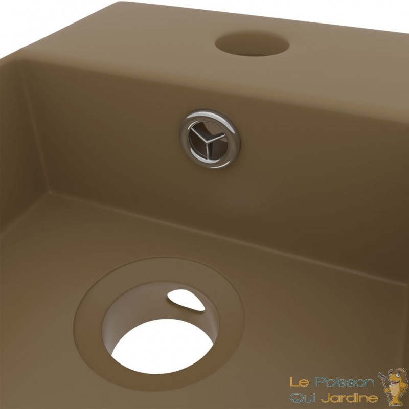 Fabriqué à partir de céramique de qualité, ce lavabo se distingue par sa surface mate qui non seulement ajoute une esthétique sobre mais facilite également le nettoyage, garantissant que votre lavabo conserve son aspect impeccable avec un minimum d'effort.