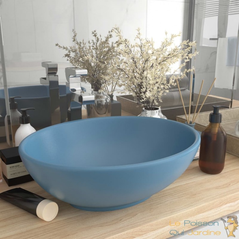 Le lavabo décrit est un élément de salle de bain en céramique de haute qualité, avec une forme ovale élégante. Il possède une finition mate qui lui confère un aspect moderne et luxueux. Ce lavabo n'est pas seulement un récipient fonctionnel pour un usage quotidien, mais il est également conçu pour ajouter une touche d'élégance à votre espace de vie.