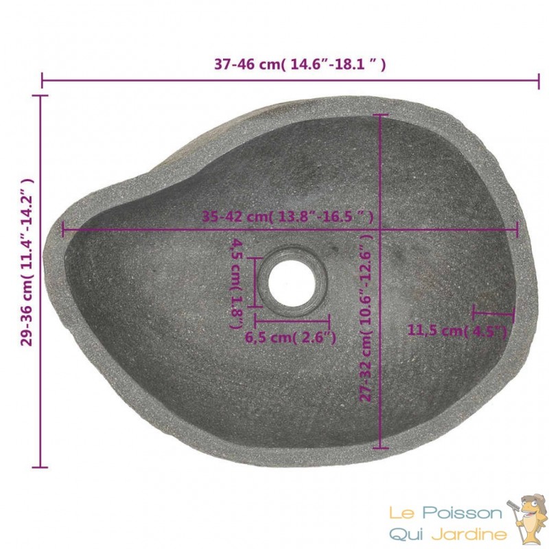 Ce lavabo ovale en pierre naturelle de rivière est une pièce remarquable qui ajoutera une note d'élégance à votre salle de bains ou toilette. Sa conception unique en fait non seulement un évier pratique pour un usage quotidien, mais aussi un véritable élément décoratif pour sublimer votre espace de vie. Adapté à tous les styles d'intérieur, ce lavabo offre une surface intérieure lisse et polie, facilitant ainsi son entretien au quotidien. Le trou de drainage, avec un diamètre de 4,5 cm, assure un écoulement efficace de l'eau.
