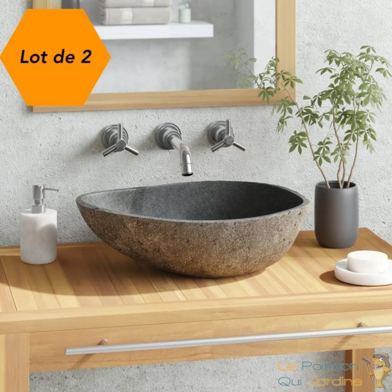 Soulignant son caractère authentique, ce lavabo en pierre de rivière est le reflet de la nature avec ses variations de couleur et de forme. Chaque pièce est unique, apportant une touche distinctive à votre salle de bains. Pour un ensemble harmonieux, explorez notre sélection de meubles de toilette en teck assortis (sku 246492-246495) disponibles dans notre magasin.