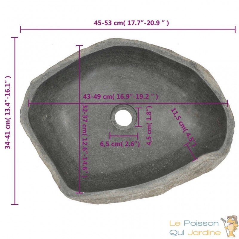 Ce lavabo ovale en pierre naturelle de rivière est une pièce remarquable qui ajoutera une note d'élégance à votre salle de bains ou toilette. Sa conception unique en fait non seulement un évier pratique pour un usage quotidien, mais aussi un véritable élément décoratif pour sublimer votre espace de vie. Adapté à tous les styles d'intérieur, ce lavabo offre une surface intérieure lisse et polie, facilitant ainsi son entretien au quotidien. Le trou de drainage, avec un diamètre de 4,5 cm, assure un écoulement efficace de l'eau.