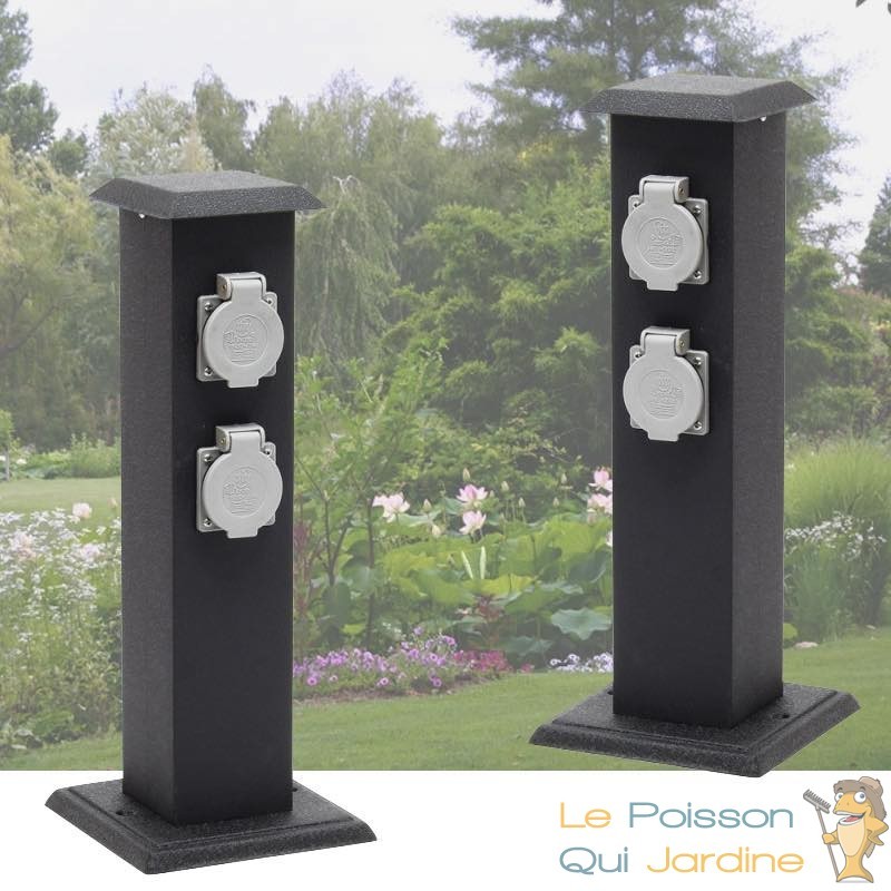 Lot de 2 colonnes électriques à placer dans le jardin ou au bord du bassin de jardin.