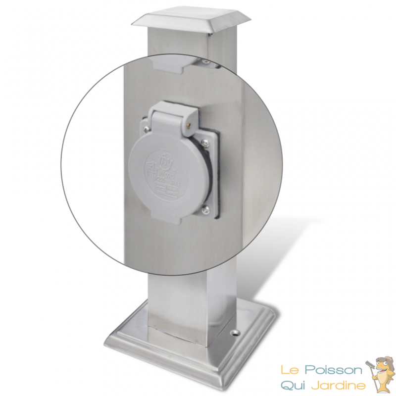 Multiprise étanche Inox pour bassins de jardin et jardin à dissimuler parmi les plantes de votre jardin ou les plantes de votre bassin de jardin.
