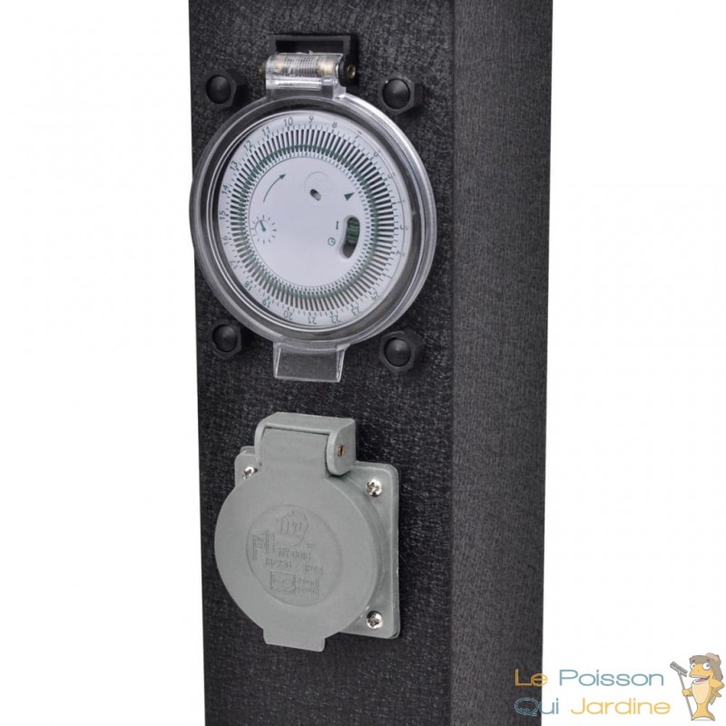 ✔ Colonne noire avec 2 prises électriques pour jardin ✔ Minuterie intégrée pour programmer éclairage et équipements ✔ Alimentation pratique pour pompe, filtre, spots ou outillage ✔ Capacité maximale 16 A, conforme aux normes européennes ✔ Protection IP44 contre projections d’eau et corps solides >1 mm ✔ Installation flexible sans câble électrique...