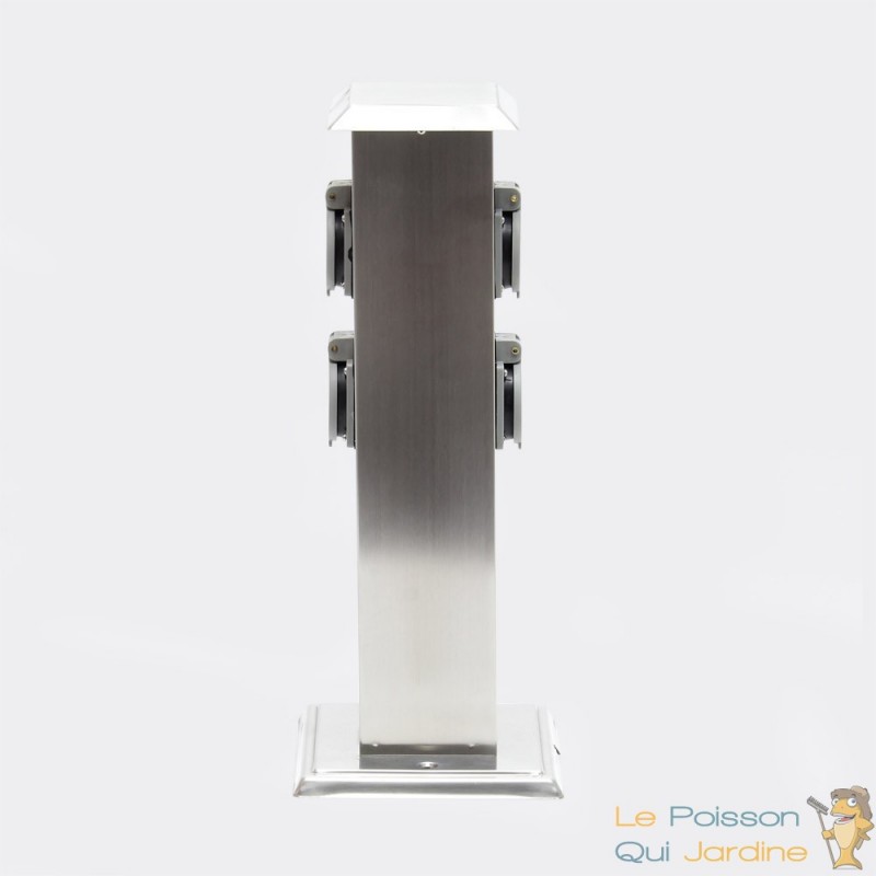 La multiprise possède une coque en fer résistante aux intempéries qui la rend discrète et quasiment invisible. Par contre, si vous décidez de la laisser apparente, elle fera office de décoration de jardin.