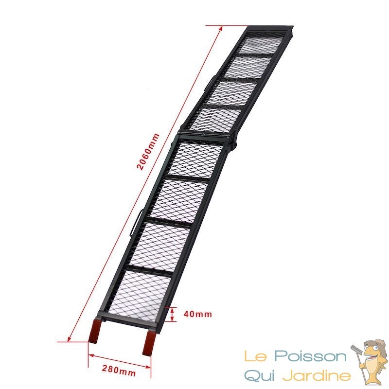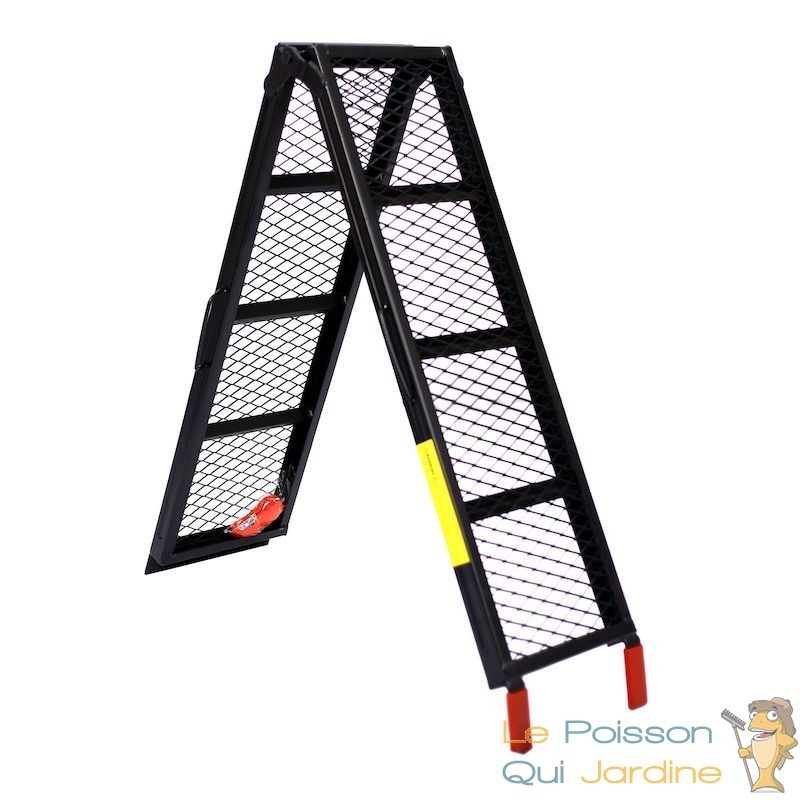La rampe pliable, dotée d'une capacité de charge robuste de 340 kg, se révèle être l'accessoire parfait en tant que rampe d'accès pour motos, scooters et quads. Conçue pour faciliter le chargement et le déchargement de vos véhicules, cette rampe offre une solution pratique et efficace.