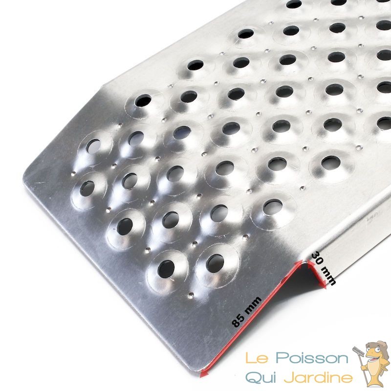 Cet ensemble comprend deux rampes en aluminium robustes conçues pour faciliter le chargement et le déchargement de quads, de motos, de machines de construction, de tondeuses à gazon et d'autres équipements. Chaque rampe est adaptée à des pneus d'une largeur maximale de 195 mm et présente une surface profilée offrant une adhérence optimale et une grande résistance au glissement.