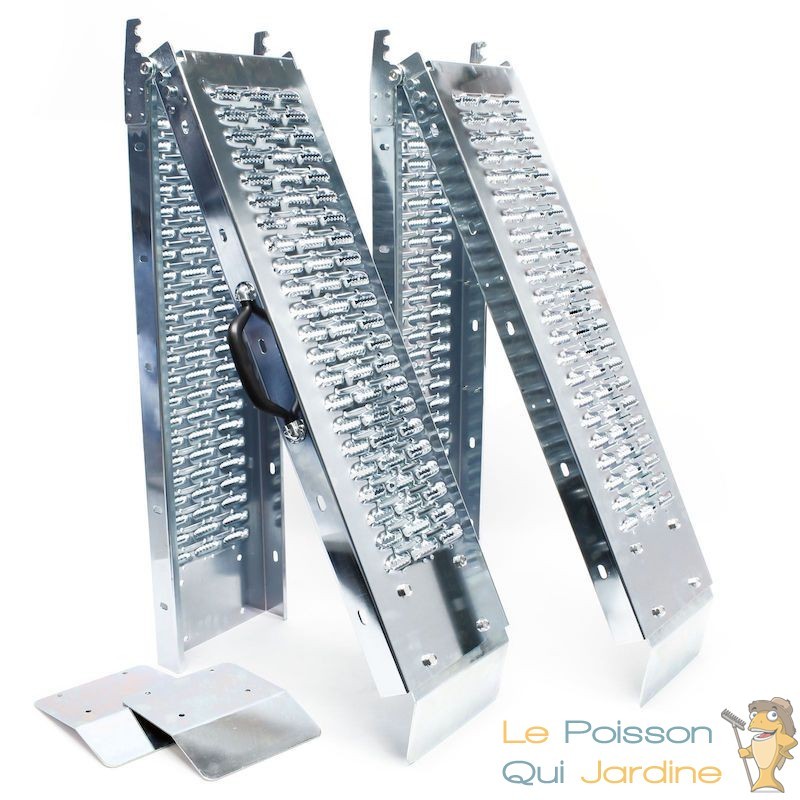 En résumé, cet ensemble de rampes en aluminium offre une solution complète et fiable pour le chargement et le déchargement de divers équipements et véhicules. Avec leur construction robuste, leur facilité d'utilisation et leur adhérence optimale, ces rampes garantissent une utilisation pratique, sécurisée et sans tracas, quel que soit le type d'équipement que vous transportez.