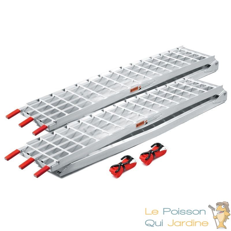 Cette rampe en aluminium pliable est une solution pratique et portable pour le chargement de motos, scooters, et même de quads si vous utilisez deux rampes. Après utilisation, vous pouvez la plier pour économiser de l'espace.