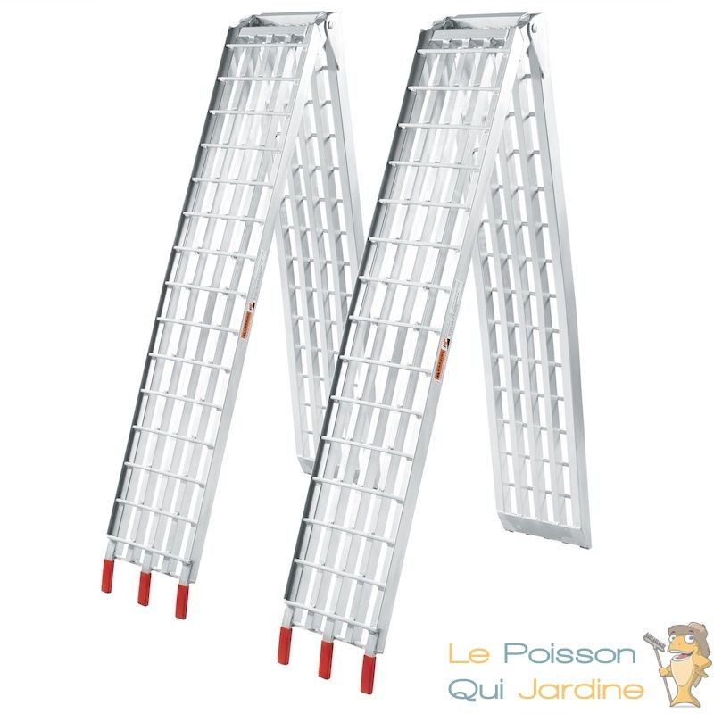 Mais il est aussi intéressant de prendre une paire de rampes pour monter une moto si le seuil de votre remorque ou de votre camion est haut. En effet, la seconde rampe vous servira à vous pour que vous soyez à côté de la moto lors du chargement. Si vous n'avez pas cette seconde rampe, vous allez être à bout de bras quand la moto sera presque dans la remorque et vous risquez de la faire tomber.