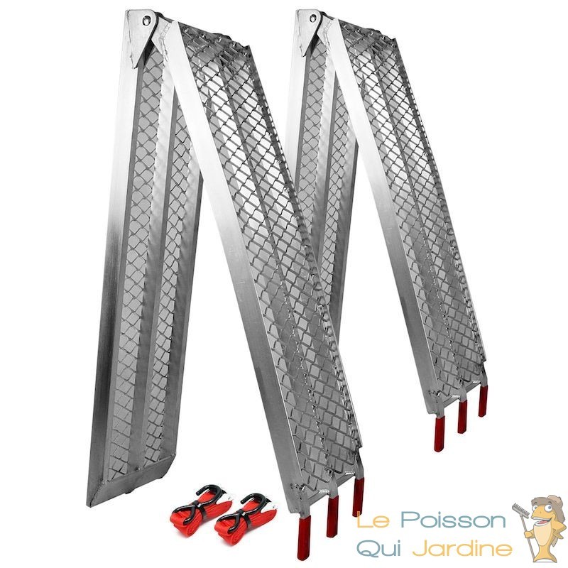 Cette rampe en aluminium pliable est une solution pratique et portable pour le chargement de motos, scooters, et même de quads si vous utilisez deux rampes. Après utilisation, vous pouvez la plier pour économiser de l'espace.