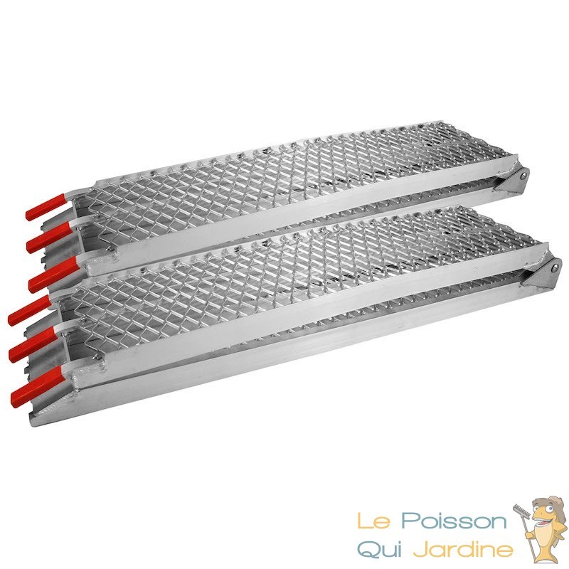 Mais il est aussi intéressant de prendre une paire de rampes pour monter une moto si le seuil de votre remorque ou de votre camion est haut. En effet, la seconde rampe vous servira à vous pour que vous soyez à côté de la moto lors du chargement. Si vous n'avez pas cette seconde rampe, vous allez être à bout de bras quand la moto sera presque dans la remorque et vous risquez de la faire tomber.