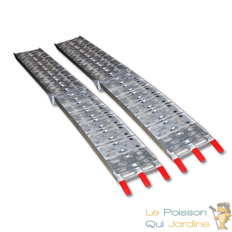 Mais il est aussi intéressant de prendre une paire de rampes pour monter une moto si le seuil de votre remorque ou de votre camion est haut. En effet, la seconde rampe vous servira à vous pour que vous soyez à côté de la moto lors du chargement. Si vous n'avez pas cette seconde rampe, vous allez être à bout de bras quand la moto sera presque dans la remorque et vous risquez de la faire tomber.
