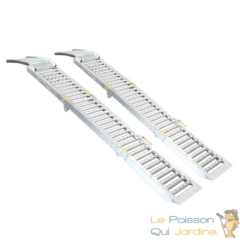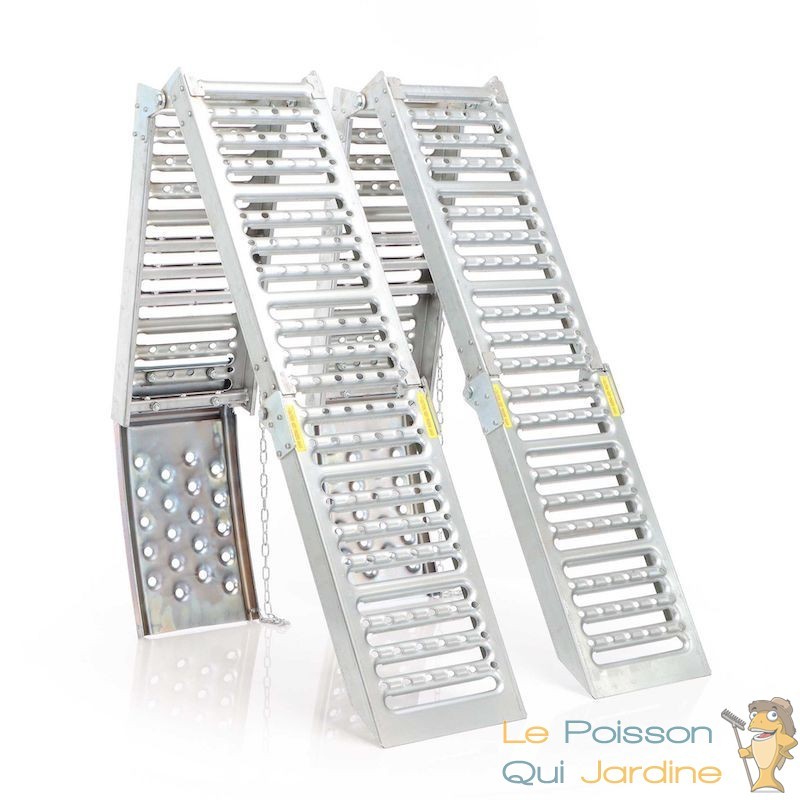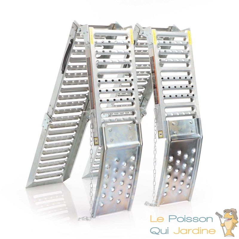 Mais il est aussi intéressant de prendre une paire de rampes pour monter une moto si le seuil de votre remorque ou de votre camion est haut. En effet, la seconde rampe vous servira à vous pour que vous soyez à côté de la moto lors du chargement. Si vous n'avez pas cette seconde rampe, vous allez être à bout de bras quand la moto sera presque dans la remorque et vous risquez de la faire tomber.