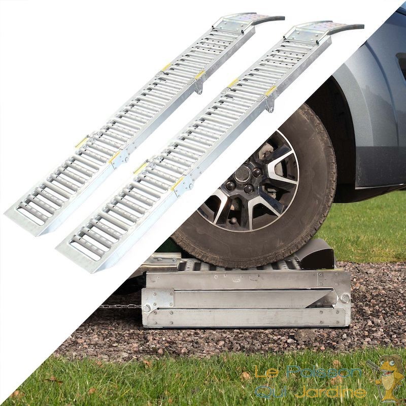 Cette rampe en aluminium pliable est une solution pratique et portable pour le chargement de motos, scooters, et même de quads si vous utilisez deux rampes. Après utilisation, vous pouvez la plier pour économiser de l'espace.