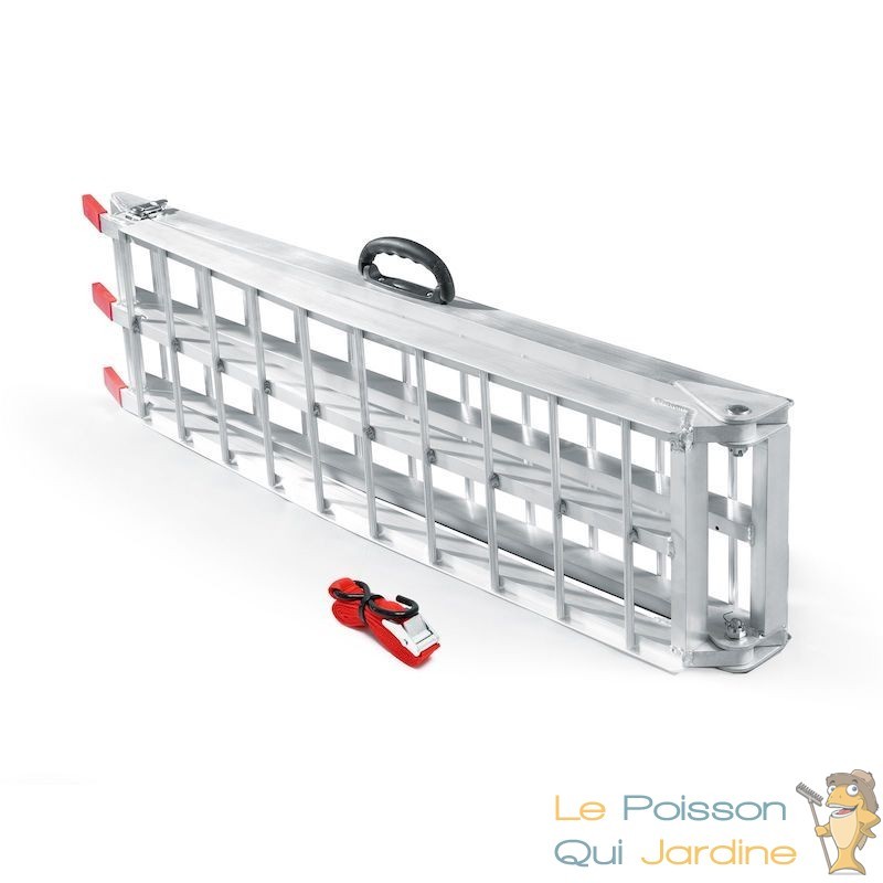 Cette rampe en aluminium pliable est une solution pratique et portable pour le chargement de motos, scooters, et même de quads si vous utilisez deux rampes. Après utilisation, vous pouvez la plier pour économiser de l'espace.