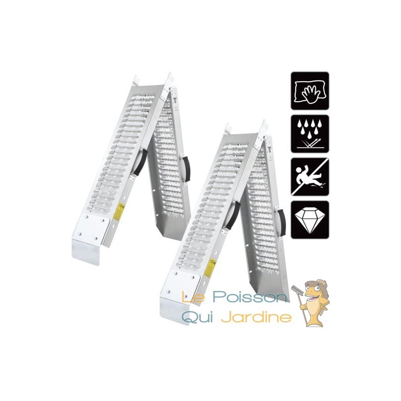 Cette rampe en aluminium pliable est une solution pratique et portable pour le chargement de motos, scooters, et même de quads si vous utilisez deux rampes. Après utilisation, vous pouvez la plier pour économiser de l'espace.