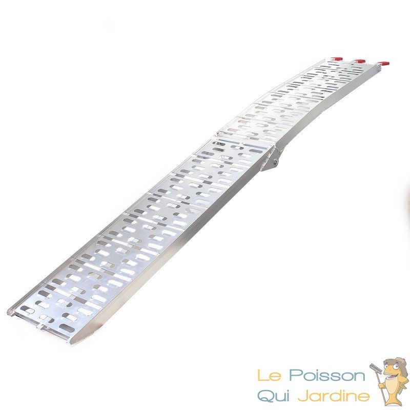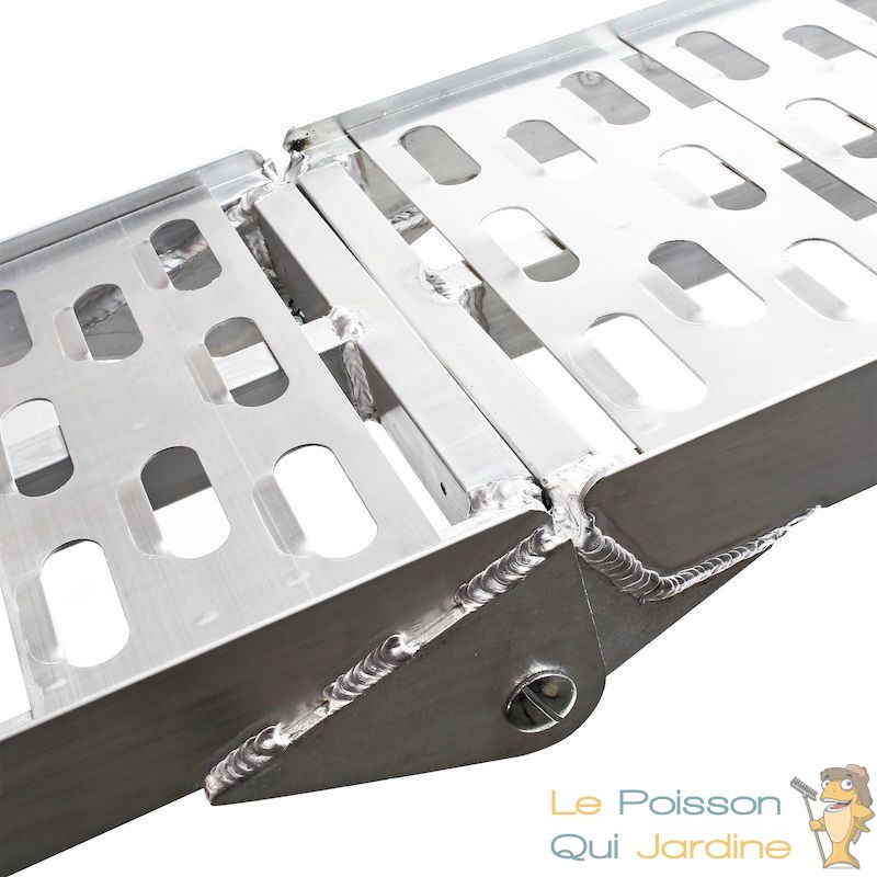 Cette paire rampe en aluminium pliable, mesurant 220x28 cm, est une solution pratique et portable pour le chargement de motos, scooters, et même de quads si vous utilisez deux rampes. Après utilisation, vous pouvez la plier pour économiser de l'espace (dimensions une fois pliée : 117 x 28,8 x 15 cm) et elle ne pèse que 7,30 kg.