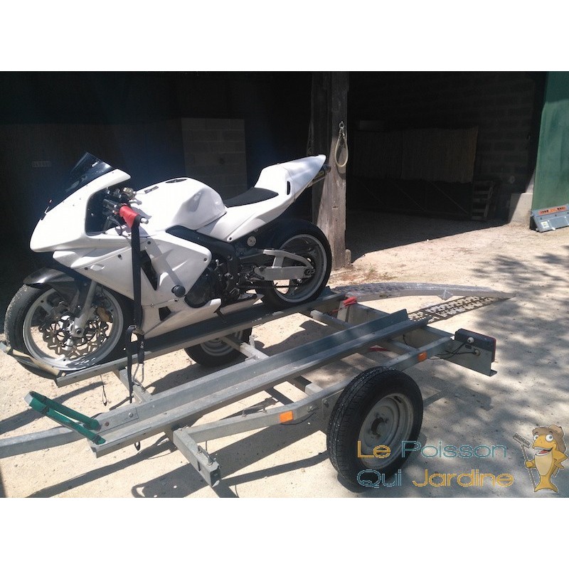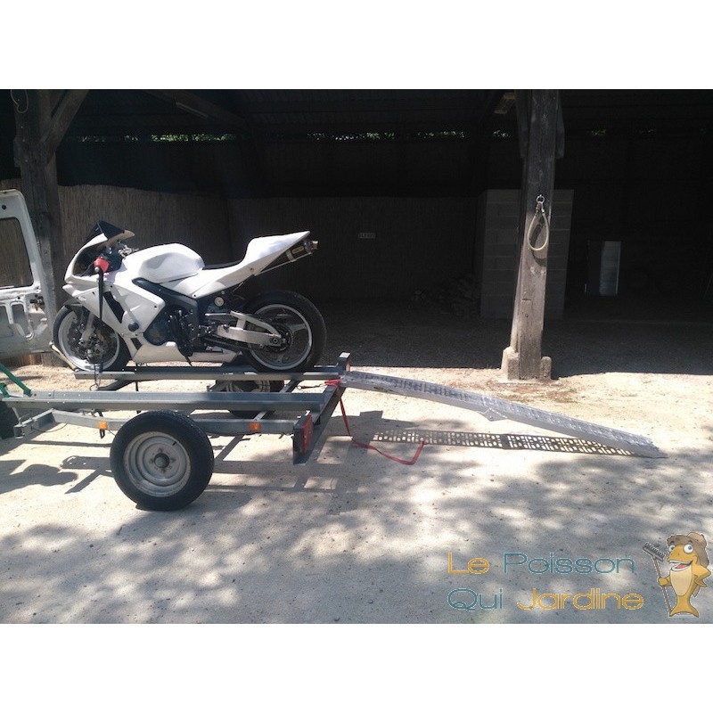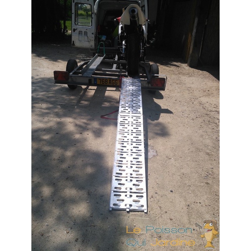 Mais il est aussi intéressant de prendre une paire de rampes pour monter une moto si le seuil de votre remorque ou de votre camion est haut. En effet, la seconde rampe vous servira à vous pour que vous soyez à côté de la moto lors du chargement. Si vous n'avez pas cette seconde rampe, vous allez être à bout de bras quand la moto sera presque dans la remorque et vous risquez de la faire tomber.