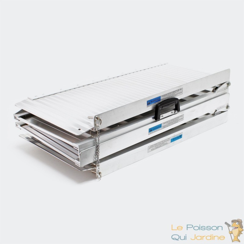 Cette rampe est pliable en plusieurs parties et ne prend pas de place quand elle n'est pas utilisée. Et en plus, elle possède une poignée de transport qui facilite son déplacement.