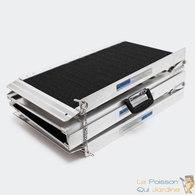 Cette rampe est pliable en plusieurs parties et ne prend pas de place quand elle n'est pas utilisée. Et en plus, elle possède une poignée de transport qui facilite son déplacement.