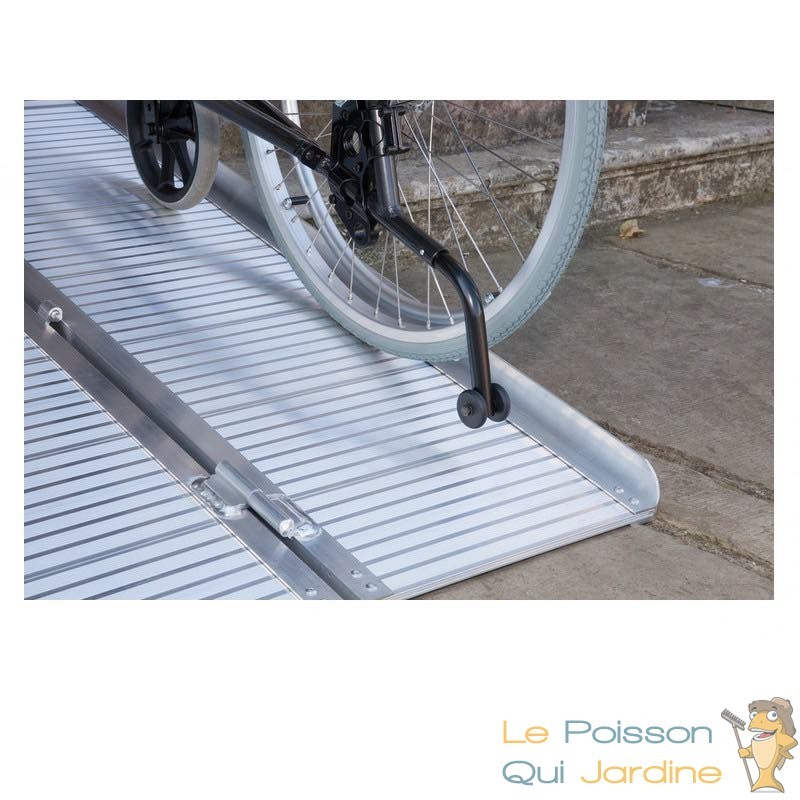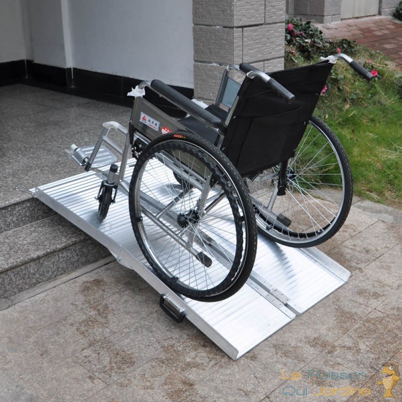 Nous vous proposons une rampe d'accès d'escalier pour monter des marches et des escaliers pour fauteuils roulant, poussettes d'enfants, chariots, landau, charrette, flight case, tracteurs, quads, et autres engins roulants motorisés. La rampe de marche peut être aussi utilisée pour des personnes sachant marcher mais ne pouvant plus gravir des marches d'escaliers.