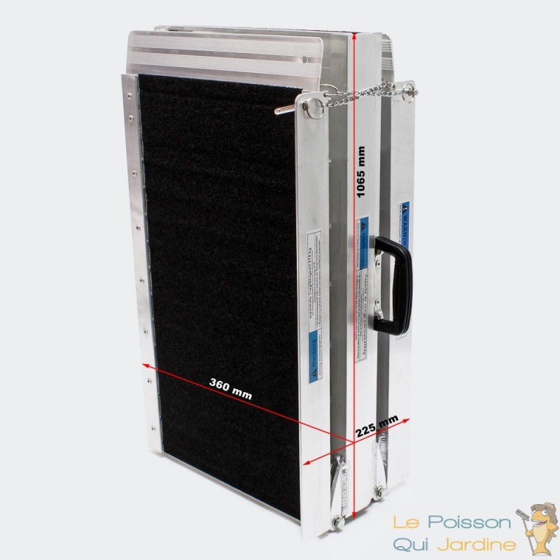 Cette rampe est pliable en plusieurs parties et ne prend pas de place quand elle n'est pas utilisée. Et en plus, elle possède une poignée de transport qui facilite son déplacement.