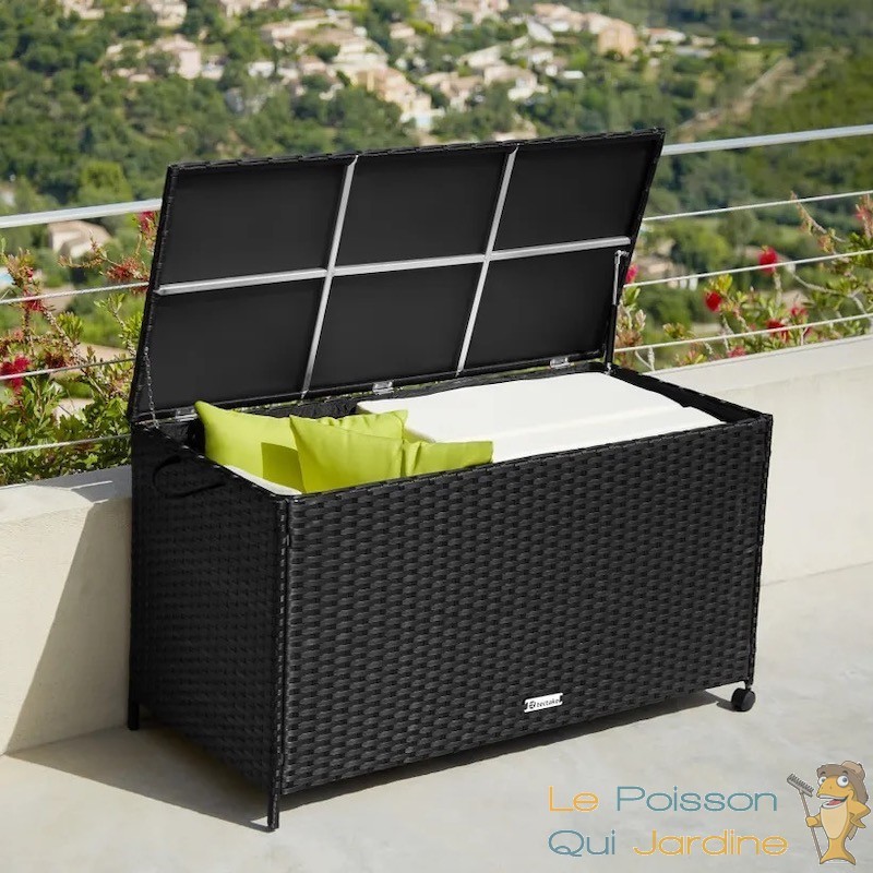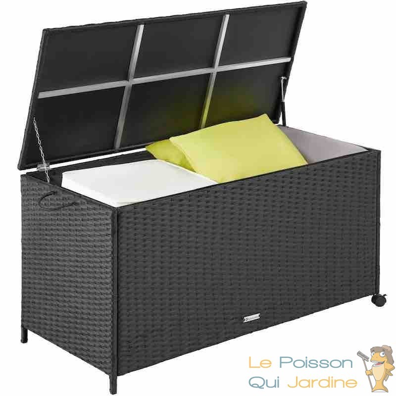 Avec ses fonctionnalités pratiques et son design robuste, le coffre de rangement avec cadre en aluminium et roues est un choix idéal pour garder vos affaires en sécurité et organisées tout en ajoutant une touche esthétique à votre espace extérieur.