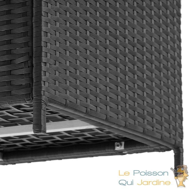 Le tressage en poly-rotin résistant aux UV non seulement ajoute une touche esthétique, mais offre également une durabilité exceptionnelle, le rendant adapté à une utilisation en extérieur tout au long de l'année. La structure en aluminium légère et inoxydable garantit une stabilité solide et une résistance aux éléments.