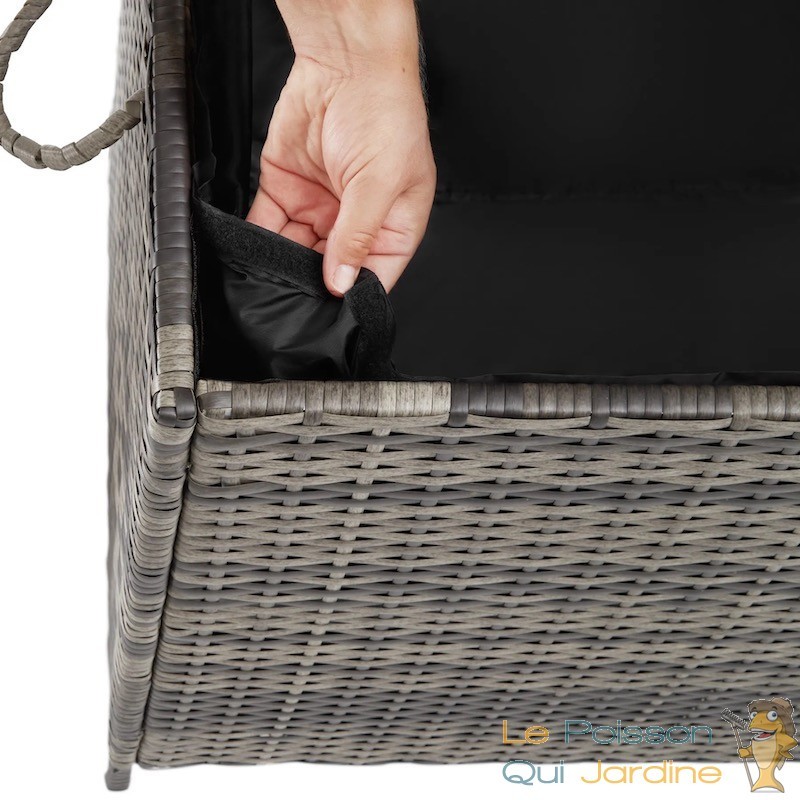 Le coffre de rangement polyvalent avec cadre en aluminium et roues est l'option idéale pour stocker et protéger vos affaires, qu'il s'agisse de coussins de siège, de jouets pour enfants ou d'autres accessoires de jardin. Doté d'un grand espace de rangement, ce coffre vous permet de garder vos articles à l'abri des intempéries.