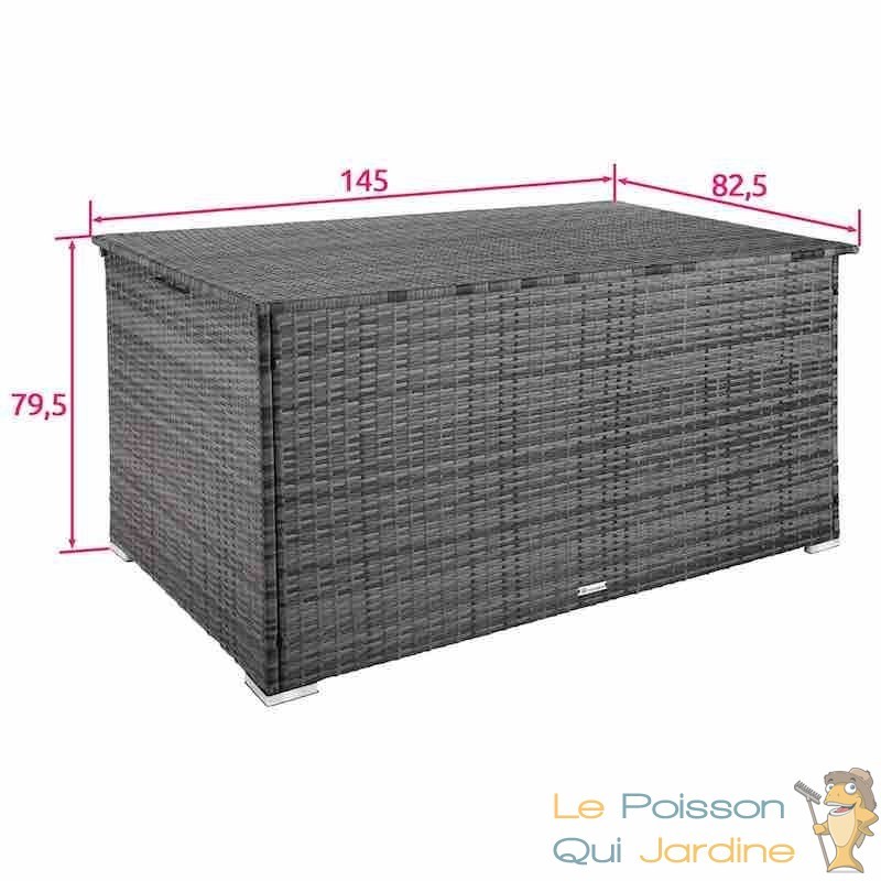 Le coffre de jardin présenté ici est un choix idéal pour ceux qui recherchent une solution de stockage pratique et esthétique pour leur espace extérieur. Avec ses dimensions de 145x82,5x79,5 cm, il offre un espace généreux pour entreposer divers articles tels que des coussins de mobilier de jardin, des jouets pour enfants, des jeux de piscine et même des outils de jardinage.