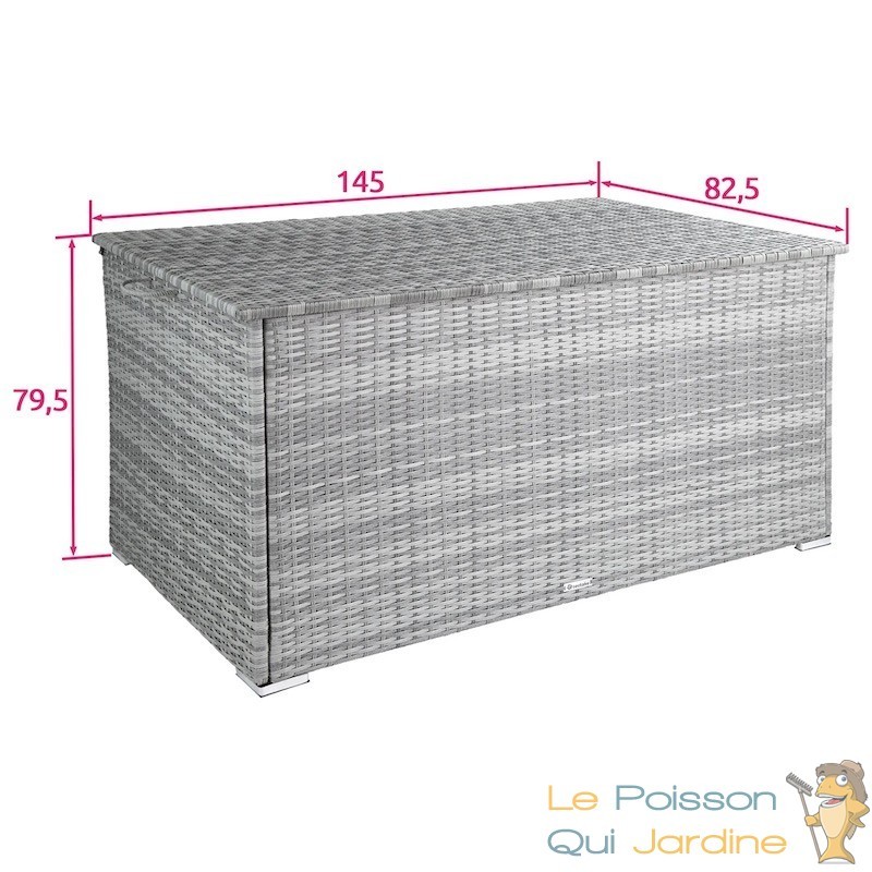 Le coffre de jardin présenté ici est un choix idéal pour ceux qui recherchent une solution de stockage pratique et esthétique pour leur espace extérieur. Avec ses dimensions de 145x82,5x79,5 cm, il offre un espace généreux pour entreposer divers articles tels que des coussins de mobilier de jardin, des jouets pour enfants, des jeux de piscine et même des outils de jardinage.
