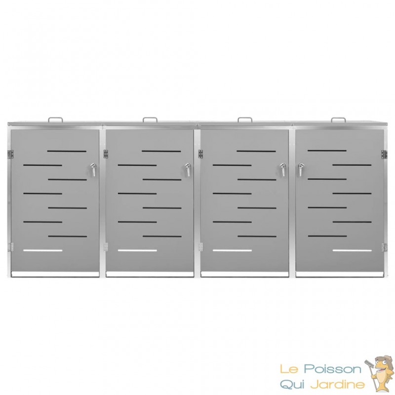La structure de cet abri est élaborée à partir d'un panneau en acier galvanisé associé à un cadre en acier inoxydable, assurant une robustesse exceptionnelle et une résistance à la rouille. Sa conception ajourée favorise la circulation de l'air, évitant ainsi les désagréments liés aux odeurs indésirables provenant de la poubelle.