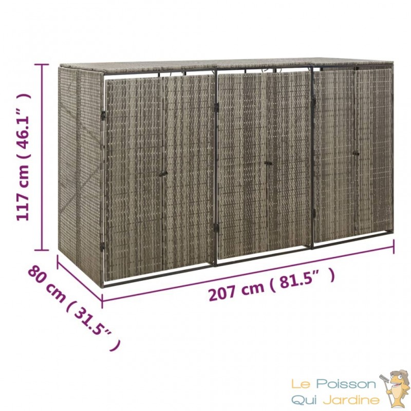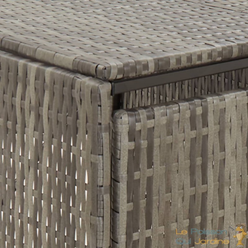 Tout d'abord, le choix de la résine tressée comme matériau principal offre une résistance exceptionnelle aux diverses conditions météorologiques. Cela signifie que votre abri sera en mesure de protéger efficacement votre poubelle des intempéries, du soleil intense, de la pluie, et même des variations de température. La durabilité de la résine tressée contribue ainsi à prolonger la vie utile de l'abri, assurant une protection fiable de votre poubelle sur le long terme.