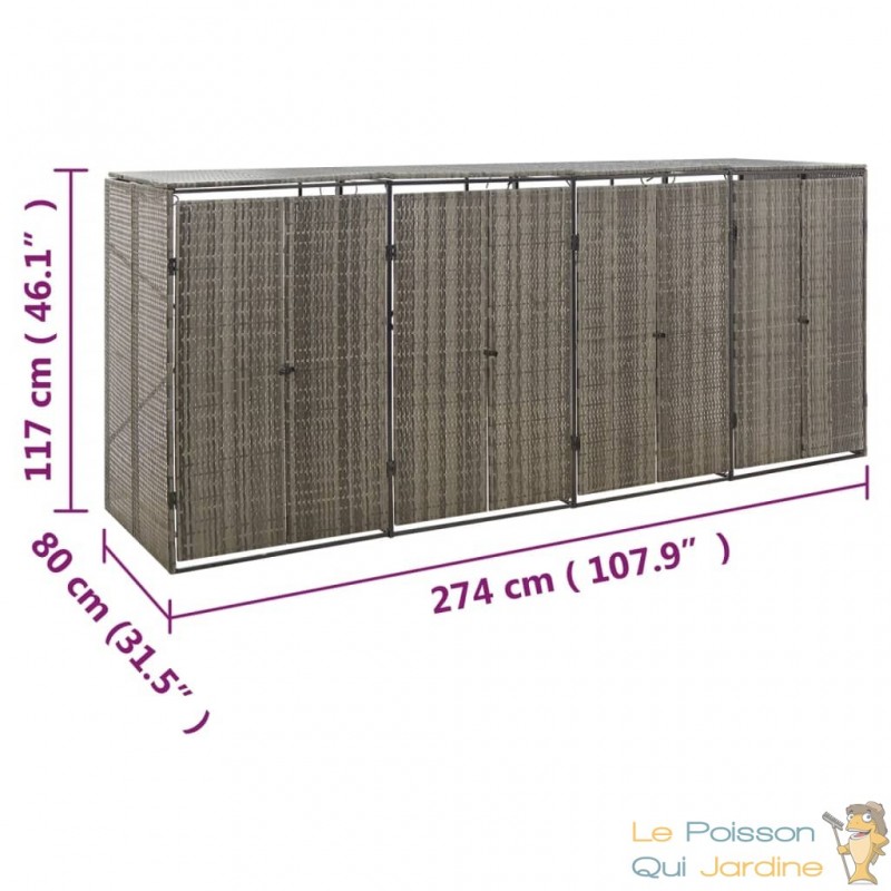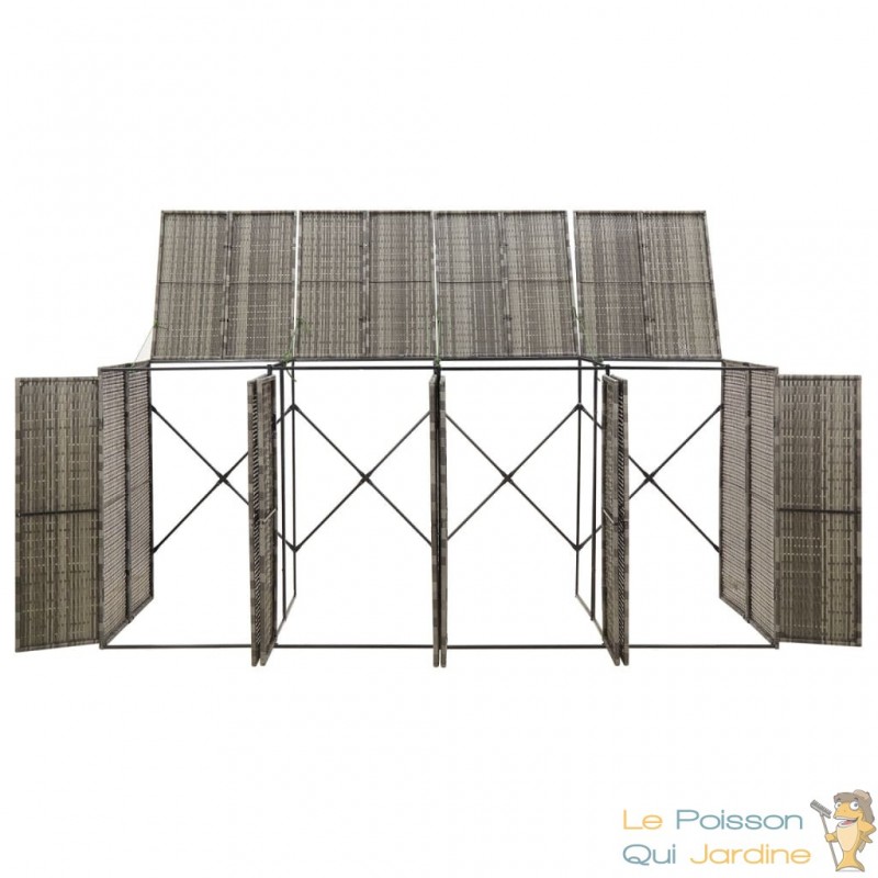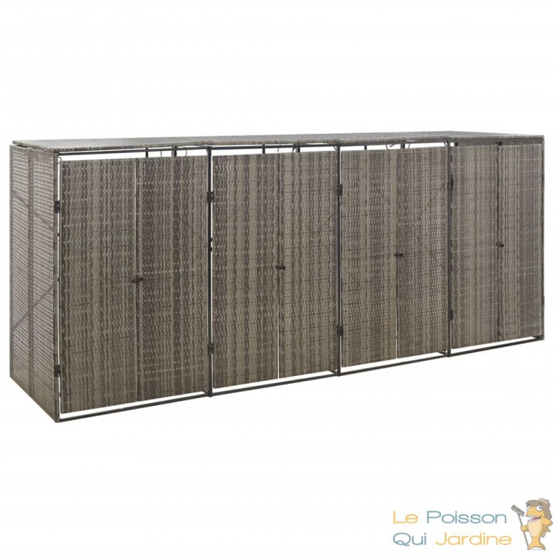 Tout d'abord, le choix de la résine tressée comme matériau principal offre une résistance exceptionnelle aux diverses conditions météorologiques. Cela signifie que votre abri sera en mesure de protéger efficacement votre poubelle des intempéries, du soleil intense, de la pluie, et même des variations de température. La durabilité de la résine tressée contribue ainsi à prolonger la vie utile de l'abri, assurant une protection fiable de votre poubelle sur le long terme.