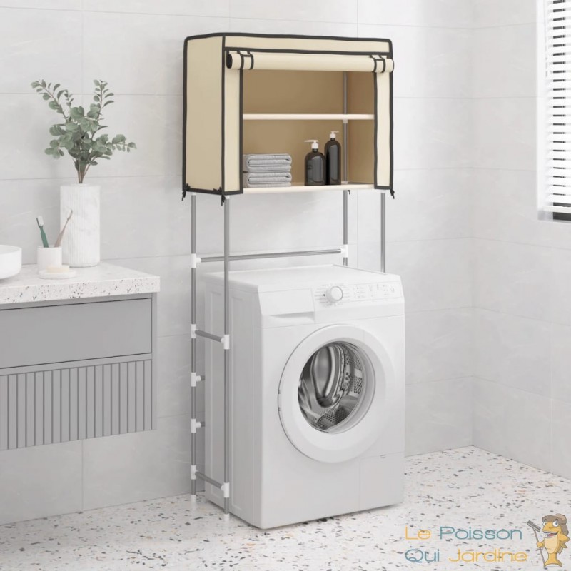 Ce support de rangement à 2 niveaux conçu pour être placé au-dessus de la machine à laver représente une solution idéale pour maximiser l'espace de stockage dans une salle de bain ou une buanderie souvent encombrée.