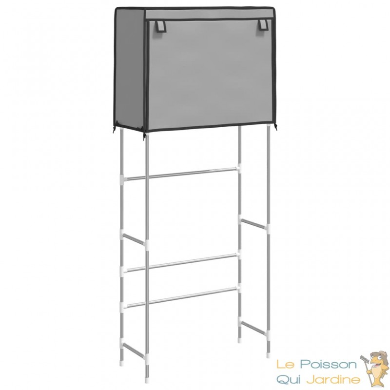 Transformez votre buanderie ou votre salle de bain avec ce lot de 2 supports de rangement à 2 niveaux, spécialement conçus pour s'installer au-dessus de votre machine à laver. Cette solution intelligente permet de maximiser chaque mètre carré de vos pièces souvent encombrées. Alliant la robustesse du fer à l'élégance pratique d'un rideau protecteur, ces étagères offrent une organisation impeccable pour vos produits du quotidien tout en conservant un design sobre et moderne.