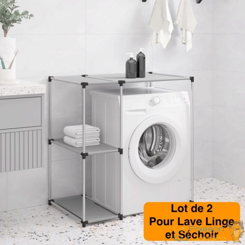Cette étagère de rangement conçue spécifiquement pour être installée au-dessus d'une machine à laver et d'un séchoir à linge représente une solution ingénieuse et multifonctionnelle pour maximiser l'utilisation de l'espace dans une salle de bain ou une buanderie déjà bien remplie.