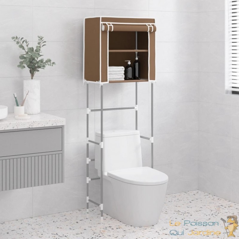 Ce support de rangement conçu pour être installé au-dessus de la toilette représente une solution innovante et pratique pour maximiser l'espace de rangement dans une salle de bain déjà encombrée.