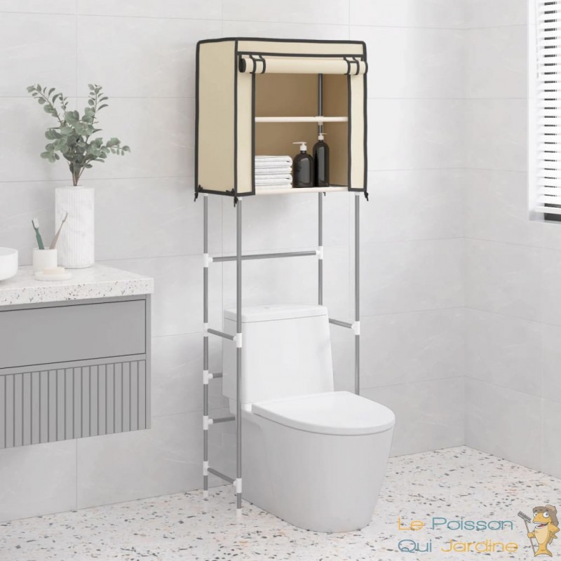 Ce support de rangement conçu pour être installé au-dessus de la toilette représente une solution innovante et pratique pour maximiser l'espace de rangement dans une salle de bain déjà encombrée.