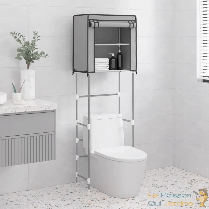 Ce support de rangement conçu pour être installé au-dessus de la toilette représente une solution innovante et pratique pour maximiser l'espace de rangement dans une salle de bain déjà encombrée.