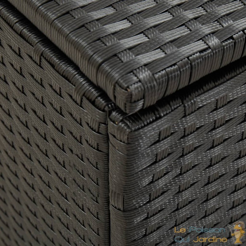 Assembler cette boîte de rangement ou coffre de jardin est également une tâche aisée, offrant ainsi une commodité supplémentaire pour son utilisation immédiate. Cependant, il est important de noter qu'il est recommandé de couvrir la boîte avec un tissu ou un matériau imperméable lorsque vous l'utilisez pour stocker des coussins ou d'autres objets sensibles à l'humidité, afin de prévenir toute infiltration d'eau lors de fortes pluies. En adoptant cette précaution simple, vous pouvez prolonger la durabilité et la fonctionnalité de votre boîte de rangement en résine tressée pour jardin, en la maintenant en excellent état pour de nombreuses saisons à venir.
