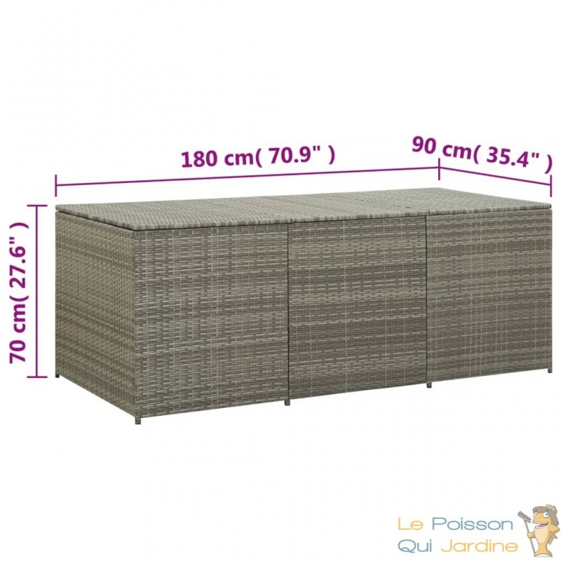 ✔ Coffre de rangement en résine tressée pour jardin, couleur gris