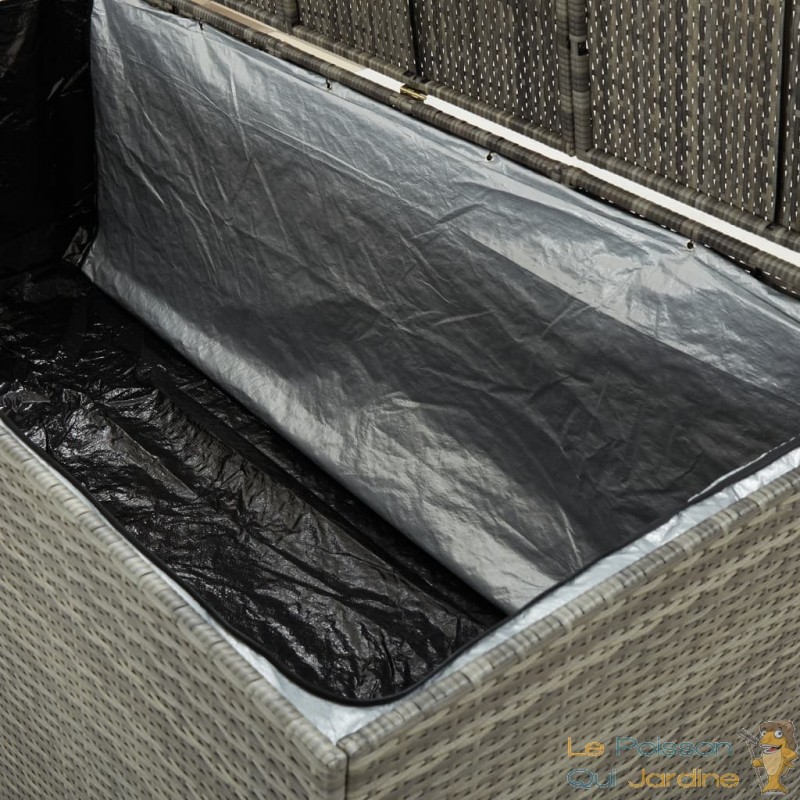Assembler cette boîte de rangement ou coffre de jardin est également une tâche aisée, offrant ainsi une commodité supplémentaire pour son utilisation immédiate. Cependant, il est important de noter qu'il est recommandé de couvrir la boîte avec un tissu ou un matériau imperméable lorsque vous l'utilisez pour stocker des coussins ou d'autres objets sensibles à l'humidité, afin de prévenir toute infiltration d'eau lors de fortes pluies. En adoptant cette précaution simple, vous pouvez prolonger la durabilité et la fonctionnalité de votre boîte de rangement en résine tressée pour jardin, en la maintenant en excellent état pour de nombreuses saisons à venir.