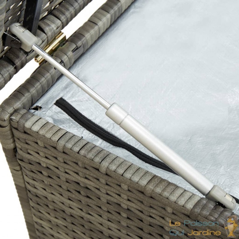 Assembler cette boîte de rangement ou coffre de jardin est également une tâche aisée, offrant ainsi une commodité supplémentaire pour son utilisation immédiate. Cependant, il est important de noter qu'il est recommandé de couvrir la boîte avec un tissu ou un matériau imperméable lorsque vous l'utilisez pour stocker des coussins ou d'autres objets sensibles à l'humidité, afin de prévenir toute infiltration d'eau lors de fortes pluies. En adoptant cette précaution simple, vous pouvez prolonger la durabilité et la fonctionnalité de votre boîte de rangement en résine tressée pour jardin, en la maintenant en excellent état pour de nombreuses saisons à venir.