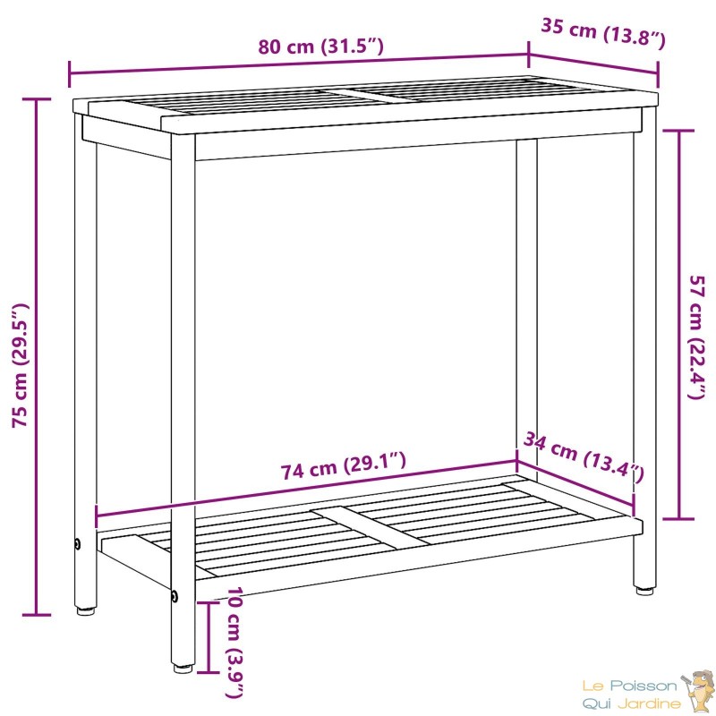 Avec son style minimaliste et ses lignes épurées, cette petite table ultra mignonne s’intègre parfaitement à une terrasse, un balcon ou même un petit coin du jardin. Mais rien ne t’empêche de l’utiliser aussi à l’intérieur : dans une véranda, un garage, ou même comme petite étagère d’appoint dans une pièce. C’est une table d’extérieur, oui, mais qui ne demande qu’à trouver sa place partout où tu en as besoin !