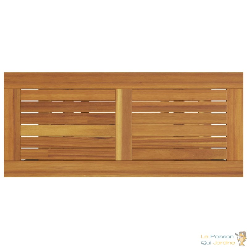 Matériaux solides : En bois d’acacia massif et acier thermolaqué, elle résiste très bien aux aléas du temps tout en restant stable et durable.