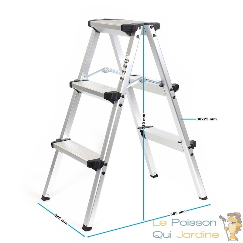 Gagnez en hauteur en toute sécurité avec notre échelle pliante en aluminium de haute qualité. Idéal pour atteindre les étagères élevées ou effectuer des travaux domestiques, ce double marchepied allie légèreté et robustesse exceptionnelle. Grâce à sa conception permettant une montée des deux côtés et ses marches rainurées antiglisse, il offre une stabilité optimale pour tous vos projets de bricolage ou d'entretien. Une solution pratique et compacte sélectionnée par Le Poisson Qui Jardine.