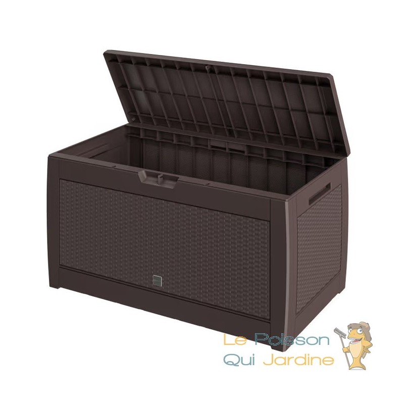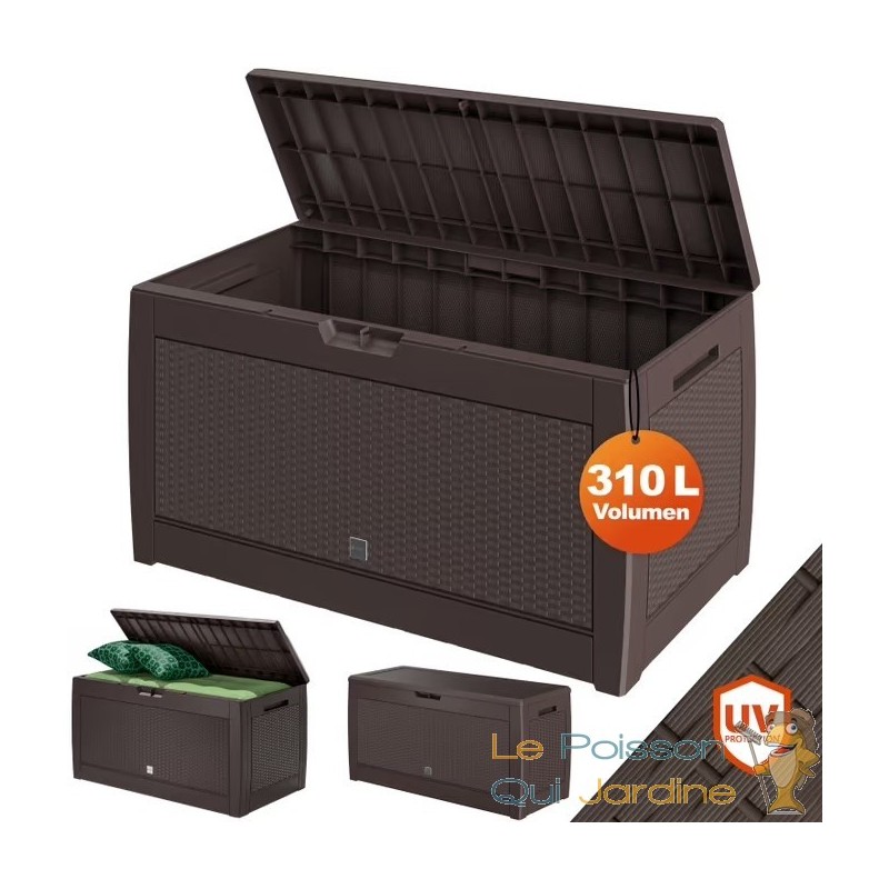 ✔ Coffre de jardin 310L aspect polyrotin coloris brun.
