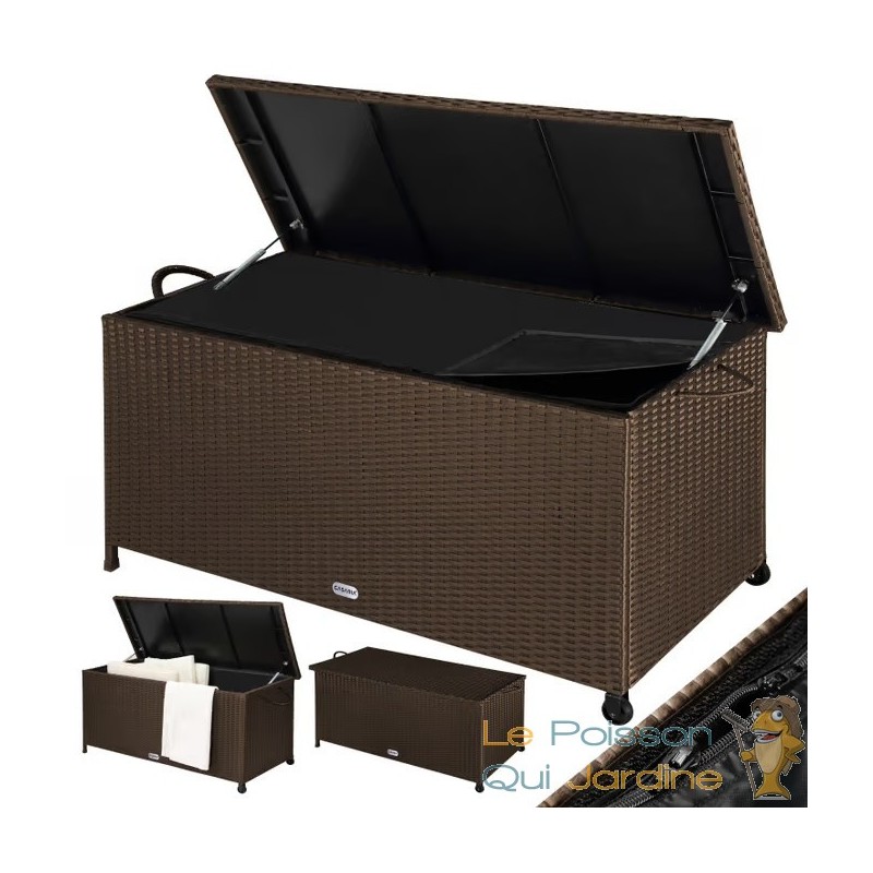 ✔ Coffre de jardin 270L en polyrotin Marron haute qualité.